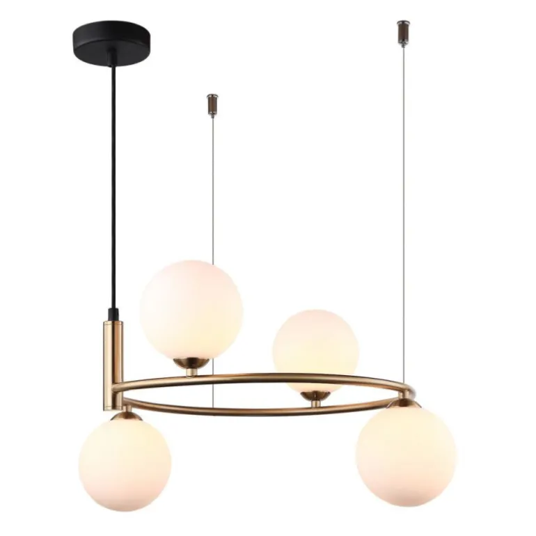 Italux Amily 4L to lampa wisząca, która doskonale sprawdzi się w nowoczesnych wnętrzach, zarówno w jadalni, kuchni, jak i nad stołem. Dzięki swojemu unikatowemu designowi i eleganckim kolorom – złotym i czarnym – lampa ta dodaje przestrzeni niepowtarzalnego charakteru.