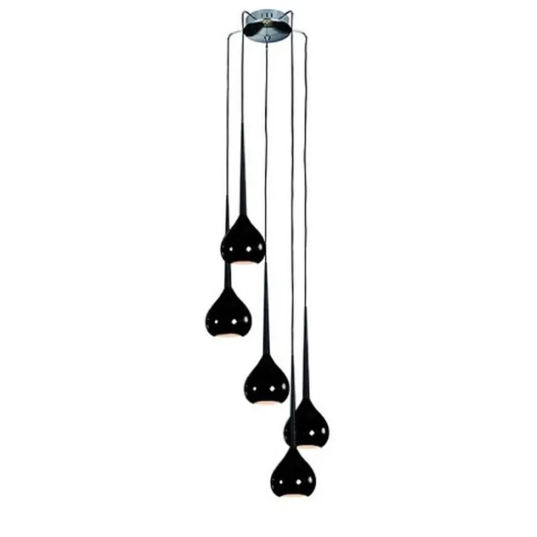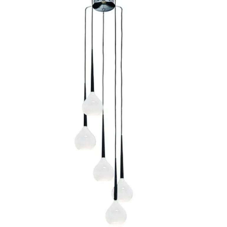 Proste w formie, ale niezwykle efektowne klosze przypominają spadające krople deszczu, świecąc mocnym punktowym światłem skierowanym ku dołowi. Skupiając na małym obszarze aż 5 źródeł światła, lampa idealnie doświetla wyznaczoną powierzchnię znajdującą się nawet znacznie poniżej.