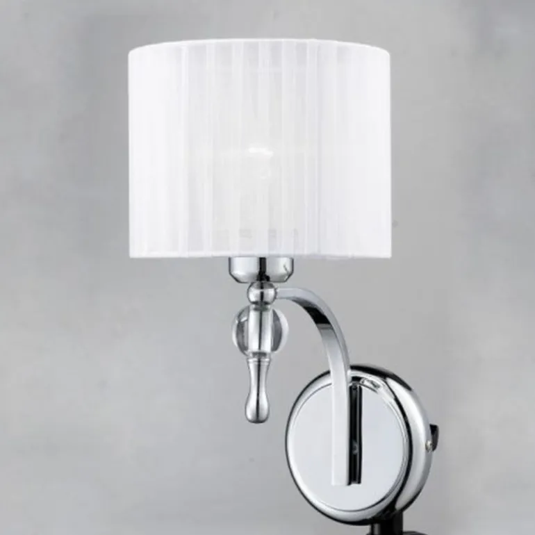 Ta niewielka lampka harmonijnie łączy w całość kilka materiałów i faktur, tworząc w efekcie zgrabny, lekki element dekoracyjno-użytkowy. Korpus ze stali chromowanej ozdobiono akrylowym akcentem i zwieńczono tkaninowym, transparentnym abażurem, który znakomicie tłumi nadmiernie mocne światło, nadając mu niezobowiązujący charakter.