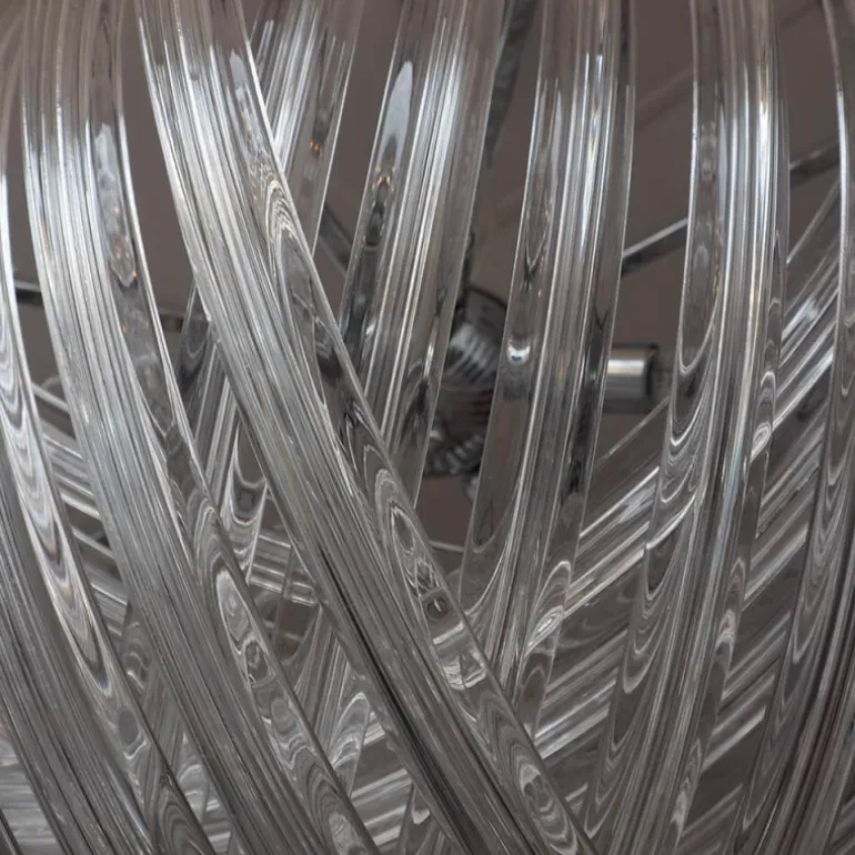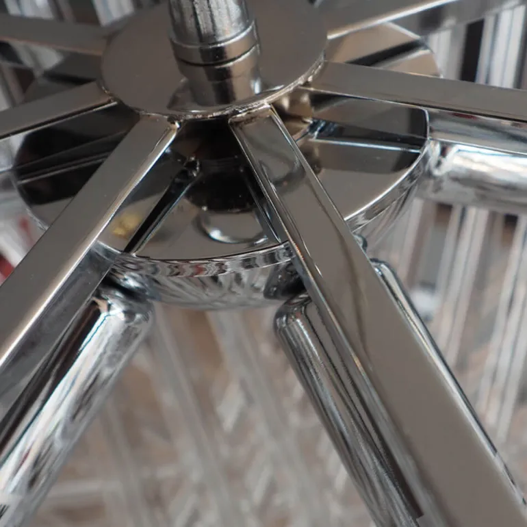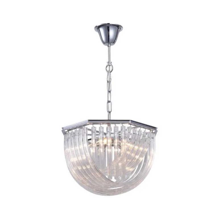 Żyrandol z kolekcji Boxlab Sun 50 to elegancka i wdzięczna propozycja do wypełnienia przestrzeni w salonie czy jadalni. Lampa składa się z chromowanego stelaża i szklanych, podłużnych elementów. Ciekawa konstrukcja sprawdzi się zarówno w nowoczesnych jak i klasycznych domach.