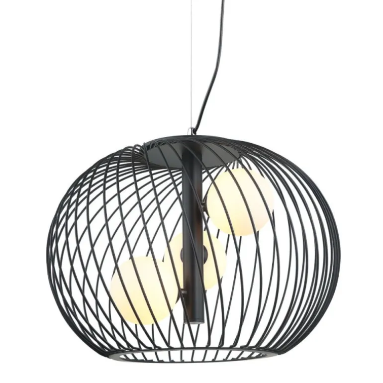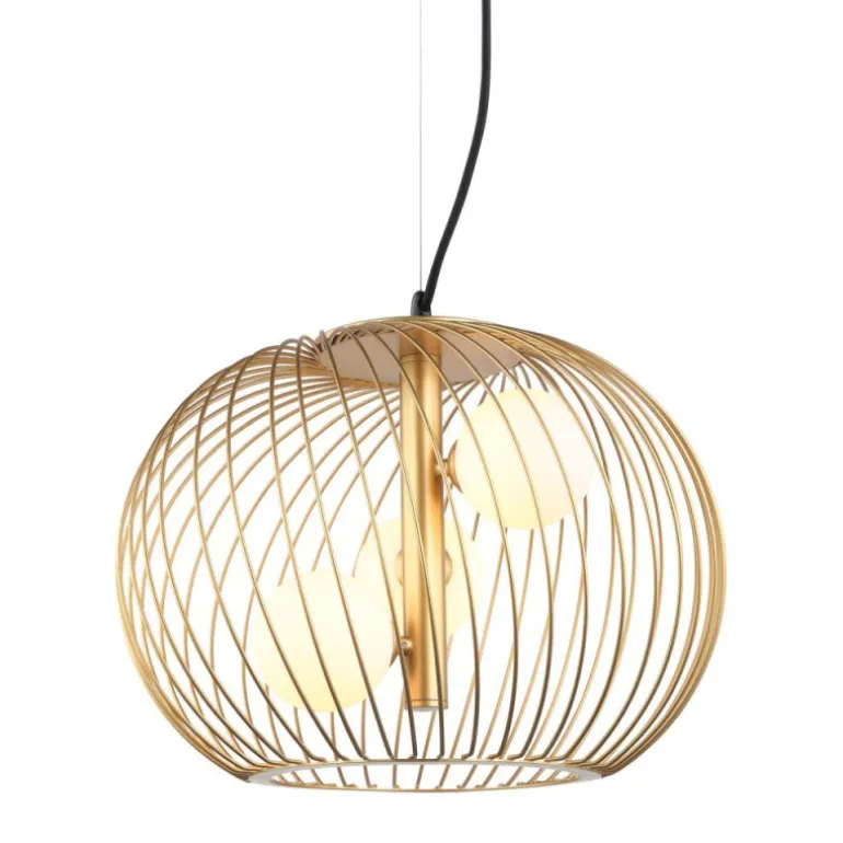 Lampa wykonana jest w stylowych kolorach złotym i czarnym, co dodaje jej wyrafinowanego wyglądu. Trzy klosze w kształcie kul, osadzone na wysokości 37 cm, tworzą efektowną kompozycję, która przyciąga wzrok i doskonale rozprasza światło. Jej średnica wynosi 43 cm, co sprawia, że jest wystarczająco duża, aby oświetlić przestrzeń, ale jednocześnie nie przytłacza wnętrza.