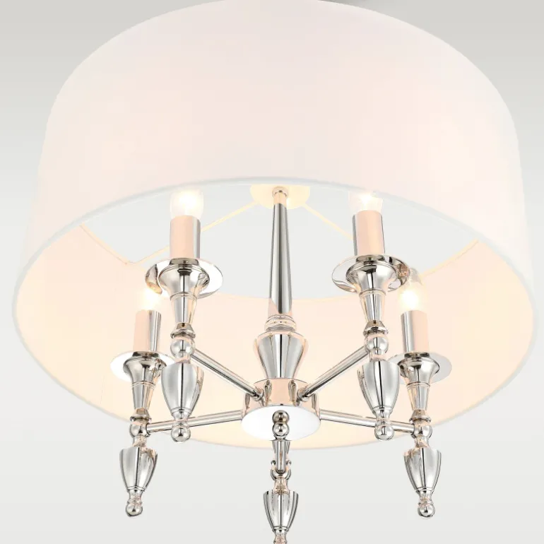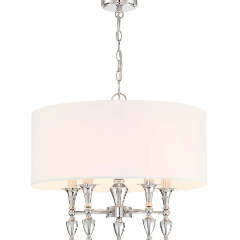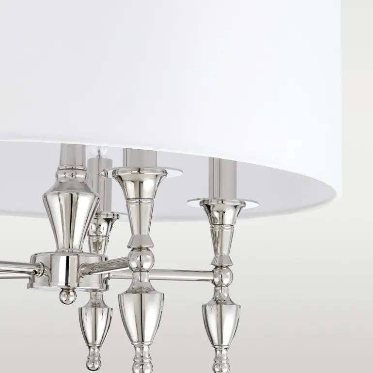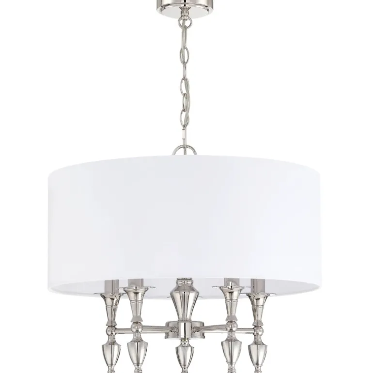 Lampa wyróżnia się pięknym wykończeniem w kolorze niklu, które nadaje jej wyjątkowy, luksusowy wygląd. Jej białe szkło doskonale komponuje się z niklowymi elementami, tworząc subtelny i harmonijny design. Lampa Austin P05173NI-WH wyposażona jest w pięć źródeł światła typu E27, co zapewnia doskonałe oświetlenie każdego pomieszczenia. Oferuje również dużą elastyczność w montażu, z możliwością regulacji długości od 57 cm do 200 cm, przy stałej wysokości 47 cm.