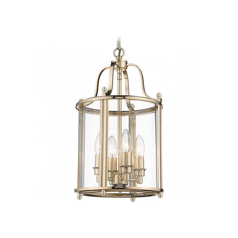 Cztery odsłonięte źródła światła, lampa w stylu typowej latarenki.