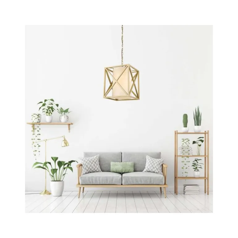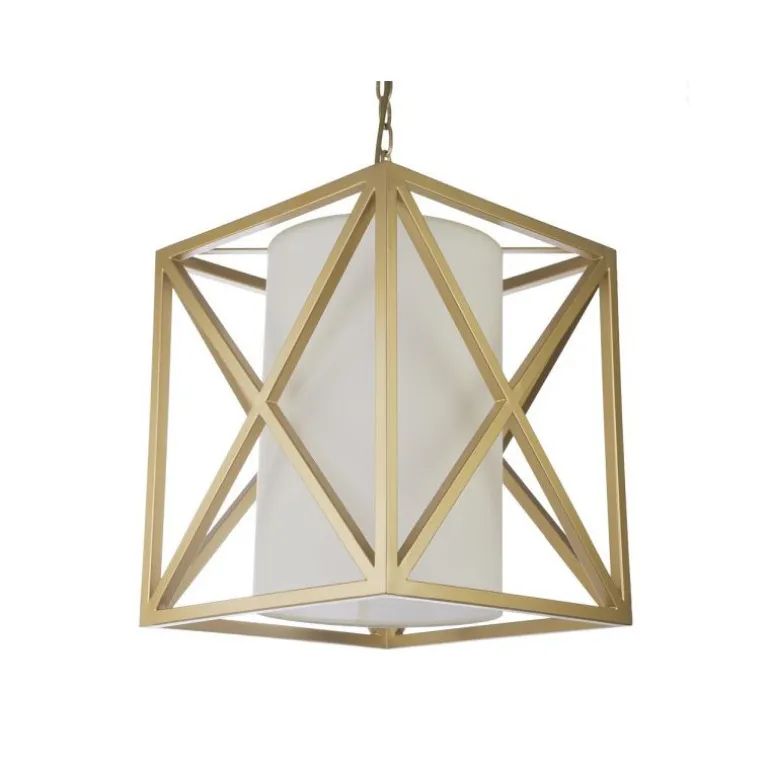Lampa wisząca z kolekcji firmy Cosmo Light, tym razem z elementami metalowymi w kolorze złotym.