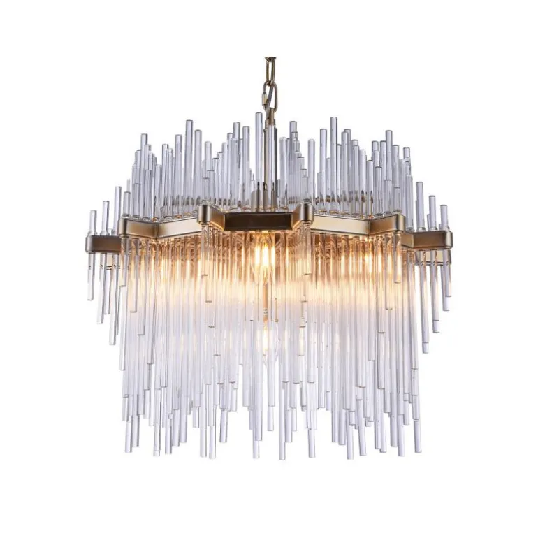 Żyrandol Cosmo Light Reykjavik pomimo popularnych kryształków jest niecodziennym rozwiązaniem i zapada w pamięć. Sprawia wrażenie jak by miała inny kształt w zależności od miejsca oraz kąta, z którego ją obserwujemy. Lampa Reykjavik posiada solidną metalową ramę wykończoną przepięknym szampańskim kolorem. Szklane kryształki wspaniale przepuszczają światło dając piękny efekt. Żyrandol Reykjavik posiada siedem wymiennych źródeł światła na popularne żarówki o gwincie E14. Jest to zaletą gdyż w łatwy sposób możemy wybrać źródło o mocy oraz barwie spełniającej nasze potrzeby. Lampę charakteryzuje bogactwo formy przy zachowaniu lekkości i symetryczności całości.
