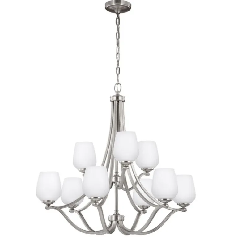Żyrandol ten wyposażony jest w dziewięć źródeł światła typu E27, co pozwala na efektywne oświetlenie nawet większych przestrzeni. Zasilanie lampy wynosi 230 V, a jej elegancka nikielowa kolorystyka dodaje wnętrzu klasy i nowoczesności. Wymiary lampy to szerokość 80,5 cm, wysokość 79 cm i regulowana długość od 89 cm do 310 cm, dzięki czemu można ją łatwo dopasować do różnych ustawień wnętrza.
