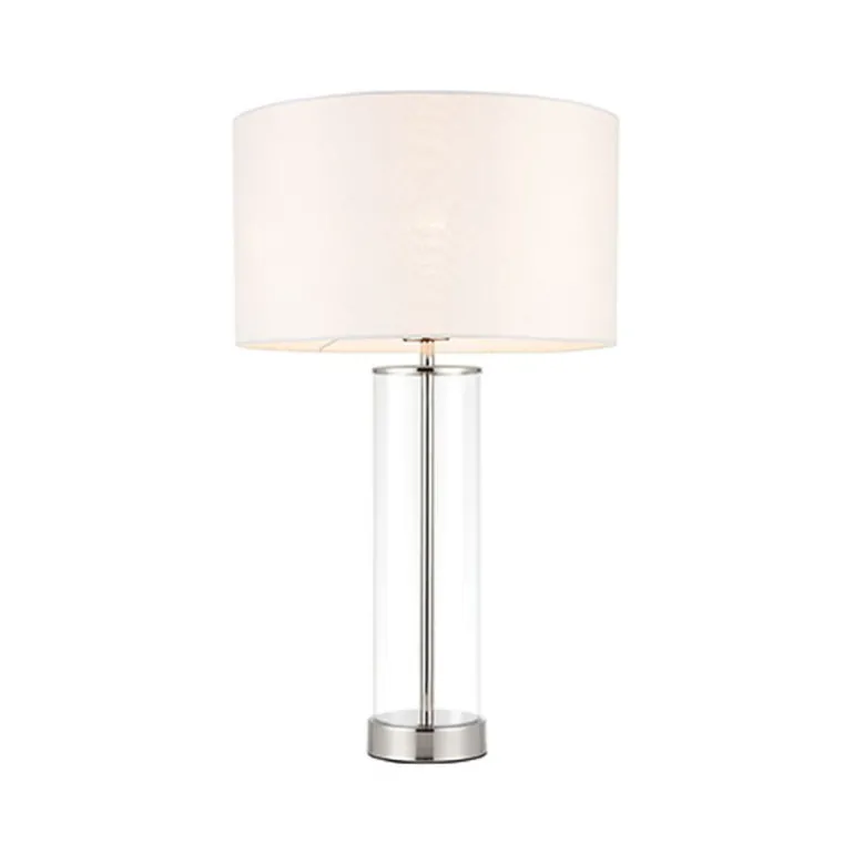 Lampa biurkowa znanej marki Endon Lessina, którego główną cechą jest efektowne wykończenie złotem lub szczotkowanym niklem i szklaną podstawą. Uzupełnieniem całości jest piękny delikatny abażur z jedwabiu. Posiada włącznik na przewodzie zasilającym. Świetnie współpracuje z żarówkami typu LED.