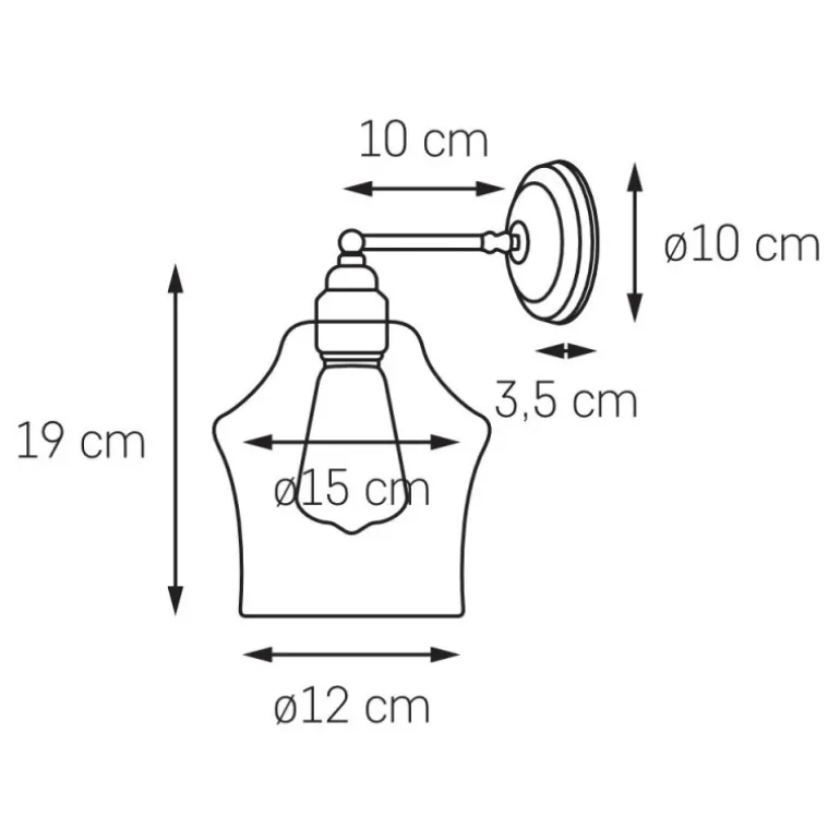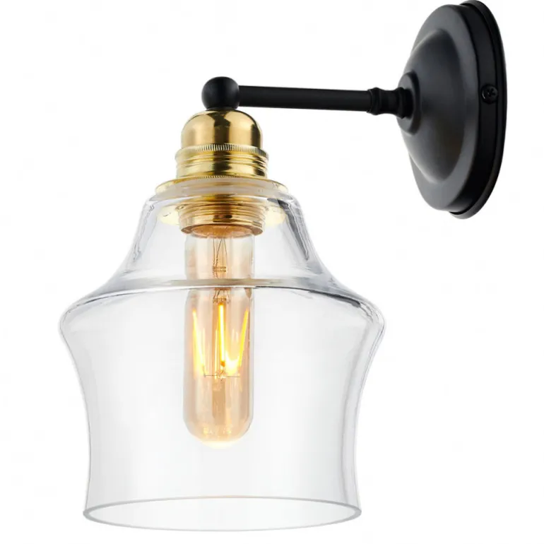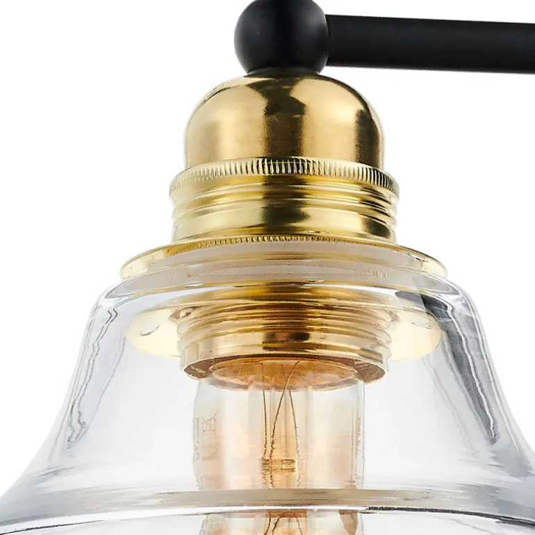 Kinkiet z serii Kaspa Longis II kinkiet. Mocowanie metalowe pokryte powłoką w kolorze złota, szkła przezroczyste. Mocowanie lampy do ściany tylko w położeniu kloszem do dołu. Jako bazę do jego stworzenia zastosowano szkła wykorzystywane w lampach wiszących z tej samej serii Kaspa Longis.