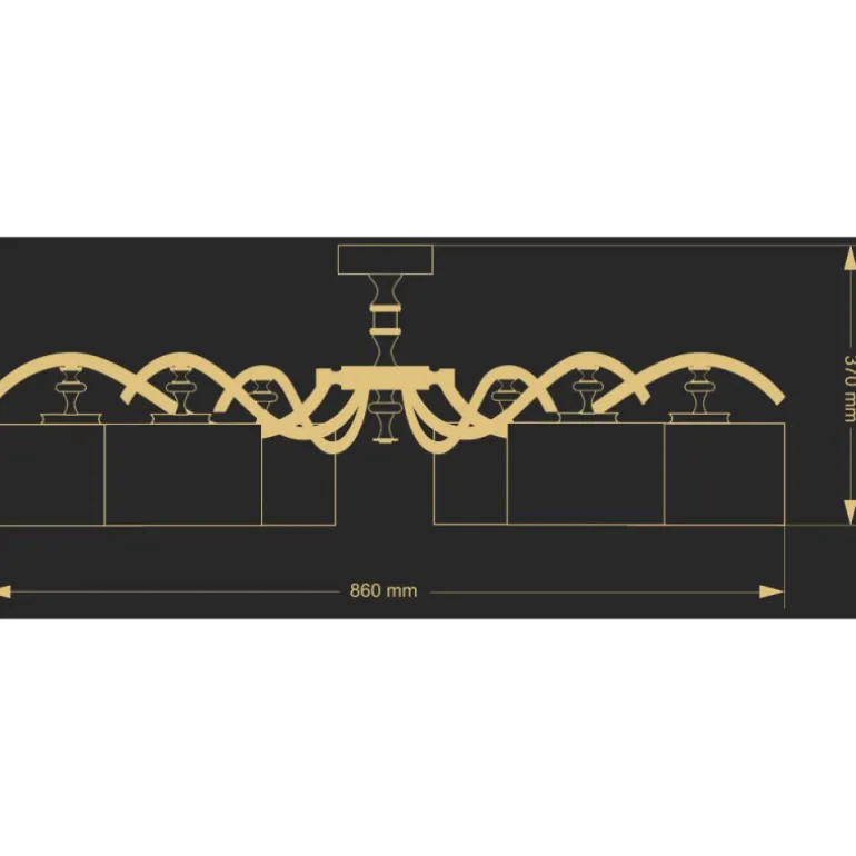 Wykonana z najwyższej jakości materiałów, lampa ta charakteryzuje się solidnym wykonaniem i dbałością o najmniejsze detale. Jej patynowy kolor nadaje jej wyjątkowy, klasyczny wygląd, który uzupełnią abażury dostępne w odcieniach czerni, bieli i szarości. Żyrandol ma 86 cm szerokości i 37 cm wysokości, co pozwala mu zadbać o odpowiednie oświetlenie większych pomieszczeń.