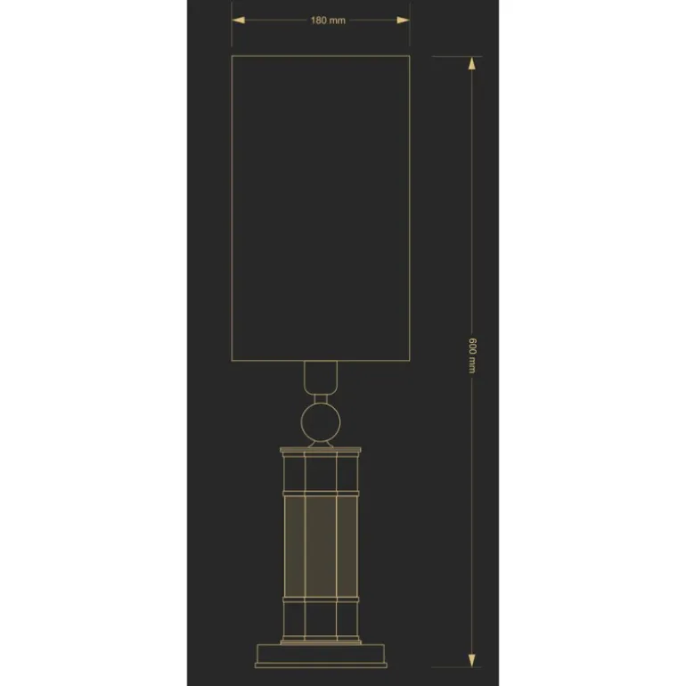 Wysokość lampy wynosi 60 cm, a szerokość 18 cm, co czyni ją kompaktową i łatwą do umieszczenia nawet na mniejszych powierzchniach. Dostępna jest w kolorze patyny oraz złotym, co dodaje jej szlachetności i klasy. Abażur lampy dostępny jest w różnych wersjach kolorystycznych: czarnym, szarym oraz białym, co pozwala na dopasowanie do indywidualnych preferencji i stylu wnętrza.