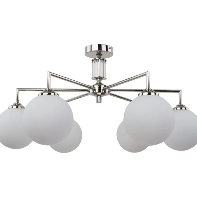 Lampa została zaprojektowana z myślą o najbardziej wymagających użytkownikach. Wykończenia w kolorach złotym matowym, patynowym, niklowym oraz klasycznym złotym nadają jej niepowtarzalnego uroku. Dzięki sześciu źródłom światła typu E14, plafon zapewnia odpowiednią ilość światła, która z łatwością rozjaśni nawet większe pomieszczenia. Lampa posiada zasilanie na 230 V, co gwarantuje jej efektywne działanie.