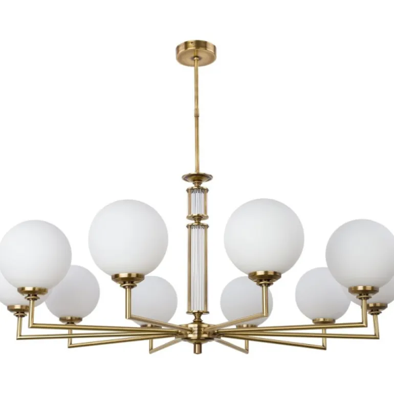 Żyrandol Kutek Mood Artu ZW 10 Glass wyróżnia się imponującą szerokością 87 cm i minimum 55 cm wysokości, co sprawia, że stanowi wyrazisty element dekoracyjny w każdym wnętrzu. Jej elegancki, złoty matowy kolor w połączeniu z patyną i niklem dodaje jej wyjątkowego uroku. Dzięki 10 źródłom światła typu E14, lampa zapewnia odpowiednie, rozproszone oświetlenie dla większych przestrzeni, a zasilanie na poziomie 230 V gwarantuje jej niezawodność i długowieczność.