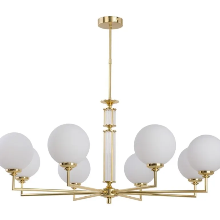 Ta lampa wisząca należy do kategorii takich jak żyrandole klasyczne, żyrandole do jadalni, salonu, kuchni, a także do pokojów i wnętrz w stylu glamour. Dzięki swojemu nowoczesnemu designowi doskonale sprawdzi się również w eleganckich, nowoczesnych aranżacjach. Lampa posiada osiem źródeł światła typu E14, co zapewnia optymalne oświetlenie w każdym pomieszczeniu, do którego jest przeznaczona.