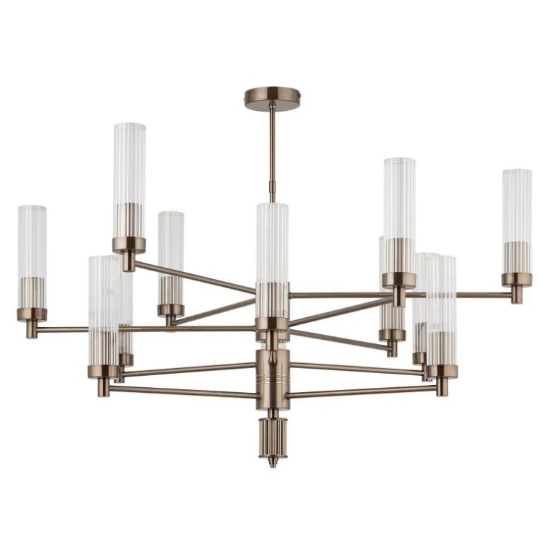 Lampa Seti ZW-12 wyposażona jest w dwanaście źródeł światła typu E14, co gwarantuje doskonałe oświetlenie pomieszczenia. Transparentne szkło w połączeniu z patyną oraz matowymi złotymi elementami dodają jej luksusowego wyglądu, natomiast subtelne niklowe i tytanowe akcenty uzupełniają całość o nowoczesny charakter. Lampa posiada regulowaną wysokość, zaczynającą się od 65 cm, co pozwala na idealne dopasowanie jej do różnorodnych przestrzeni. Zasilanie lampy wynosi 230 V, co jest standardem w większości nowoczesnych domów.