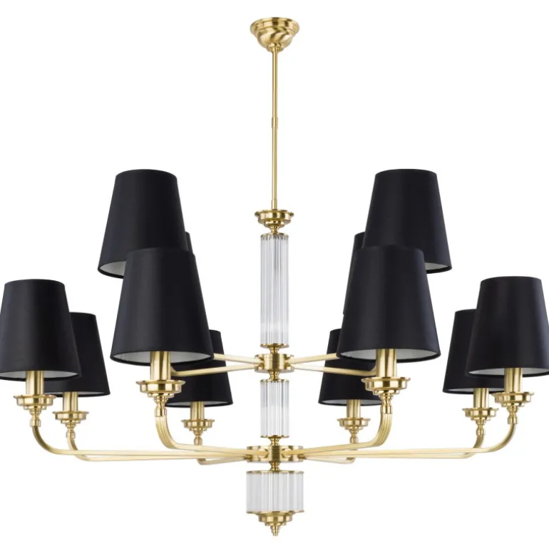 Lampa posiada dwanaście źródeł światła na typ żarówki E14, co gwarantuje jasne i równomierne oświetlenie przestrzeni. Wyjątkowa konstrukcja i matowe wykończenie w kolorze złotym oraz nikiel nadają jej unikatowy efekt wizualny, idealnie współgrając z różnymi aranżacjami wnętrz. Wysokość lampy można regulować, osiągając minimalną wysokość 70 cm, co pozwala na dostosowanie jej do różnych potrzeb i pomieszczeń. Klosze dostępne są w różnych kolorach, w tym cappuccino, biel, jasny szary i czarny, co umożliwia jeszcze lepsze dopasowanie do indywidualnych preferencji wystroju.