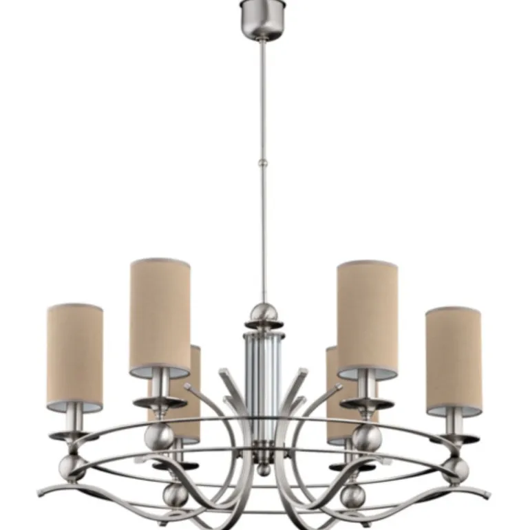 Lampa posiada sześć źródeł światła, współpracujących z żarówkami typu E14, co zapewnia doskonałe oświetlenie nawet w większych pomieszczeniach. Zasilana jest prądem o napięciu 230 V, co gwarantuje jej niezawodność i wydajność. Wysokość lampy wynosi 70 cm, co czyni ją idealnym wyborem do zawieszenia nad stołem w jadalni, w salonie czy w holu.