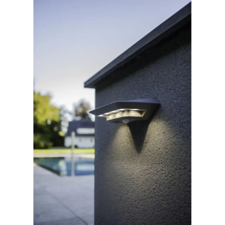 Klasa szczelności IP44 zapewnia ochronę przed warunkami atmosferycznymi, dzięki czemu lampa doskonale sprawdza się na tarasach oraz innych przestrzeniach zewnętrznych. Dodatkowo, wyposażona w czujnik ruchu, zapewnia komfort i bezpieczeństwo użytkowania. Barwa LED o wartości 4000K – biały naturalny oraz strumień świetlny 260 lm gwarantują optymalne oświetlenie przestrzeni, zapewniając jednocześnie energooszczędność i długa żywotność.