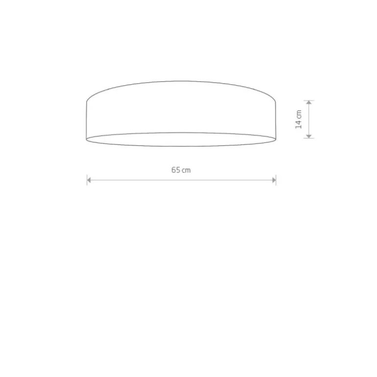 Lampa charakteryzuje się minimalistycznym i zarazem luksusowym designem. Piękno tej lampy tkwi w jej prostocie oraz subtelnych, złotych wykończeniach, które dodadzą wnętrzu odrobinę elegancji. Jej szerokość wynosi 65 cm, a wysokość to 14 cm, co czyni ją idealnym wyborem do większych pomieszczeń, takich jak salon czy jadalnia.