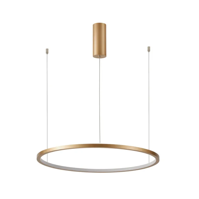 Italux Vinola Wisząca Złota 60 P to elegancka i nowoczesna lampa wisząca, która idealnie wpasuje się w każdy współczesny wystrój wnętrza. Dzięki swojemu złotemu wykończeniu, lampa dodaje luksusowego akcentu, który przyciąga wzrok i staje się centralnym punktem pomieszczenia. Jej minimalistyczny design i subtelna linia sprawiają, że harmonizuje zarówno z klasycznymi, jak i bardziej awangardowymi aranżacjami.