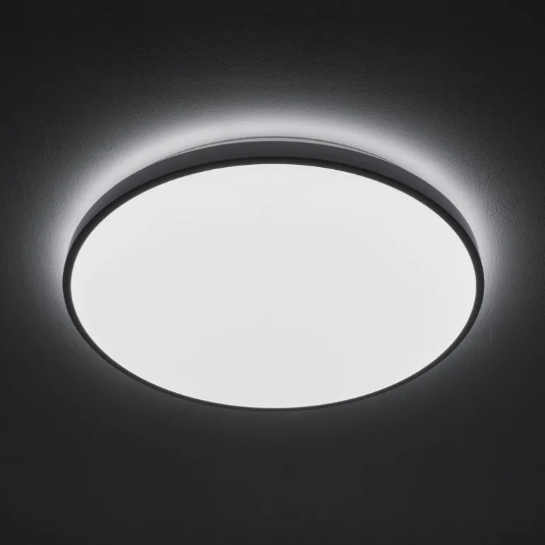 Lampa działa na zasilaniu 230 V, co sprawia, że jest kompatybilna z większością domowych instalacji elektrycznych. Posiada klasę szczelności IP44, co oznacza, że może być używana w pomieszczeniach o podwyższonej wilgotności, takich jak łazienki. Jej wymiary to 49 cm szerokości, 5 cm wysokości oraz 49 cm długości, co czyni ją idealnym rozwiązaniem do oświetlenia średniej wielkości pomieszczeń.