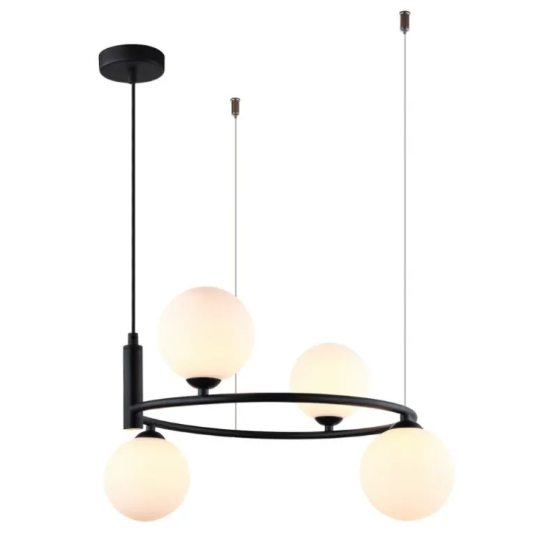 Italux Amily 4L to lampa wisząca, która doskonale sprawdzi się w nowoczesnych wnętrzach, zarówno w jadalni, kuchni, jak i nad stołem. Dzięki swojemu unikatowemu designowi i eleganckim kolorom – złotym i czarnym – lampa ta dodaje przestrzeni niepowtarzalnego charakteru.