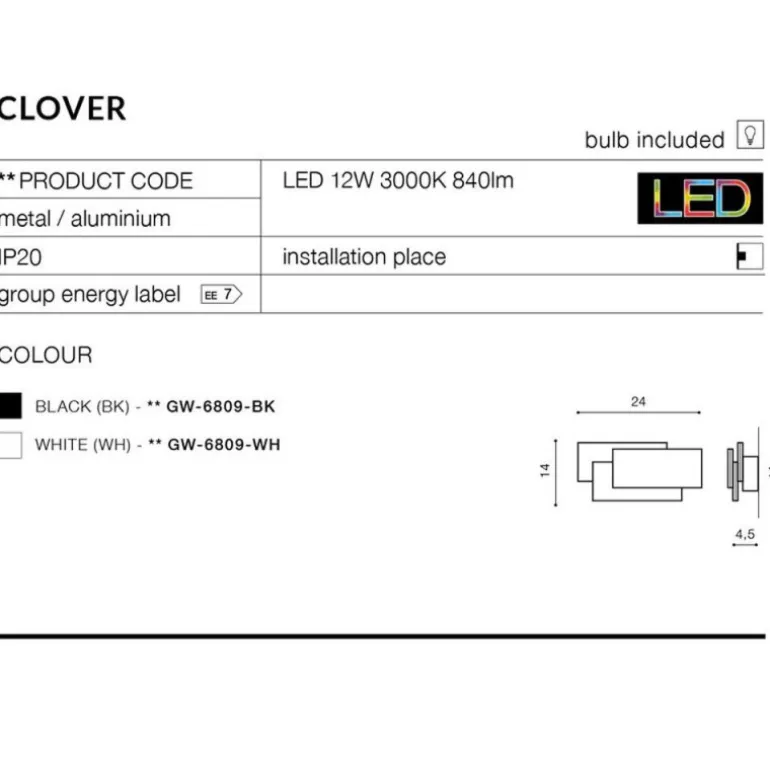 Kinkiet Led Azzardo Clover Square to prosta i elegancka lampa, służąca przede wszystkim jako dekoracja wnętrza. Ukryty na tylnej ściance kinkietu wbudowany moduł LED, daje lekkie, kameralne światło, rozchodzące się naokoło lampy po ścianie. Moduł ma moc 12W lecz jest zasłonięty, więc ilość światła jest rzeczywiście dosyć mała. Jednak jako element dekoracyjny np przy telewizorze lub kominku.
