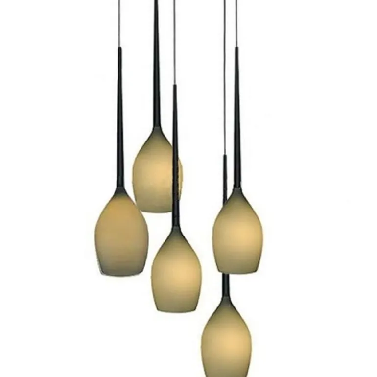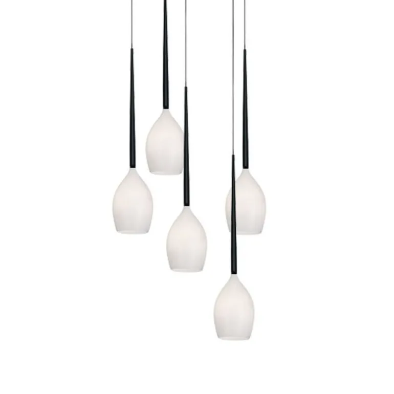 Lampa z kloszami w kolorze białym rozświetli nam nieduże pomieszczenie. Klosze czarne i dymione tłumią światło. Są przeznaczone do oświetlenia dekoracyjnego, ze światłem padającym w dół.