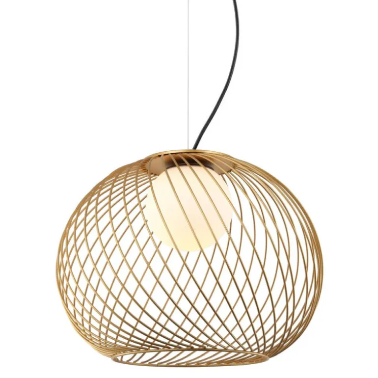 Dzięki średnicy 43 cm oraz wysokości 37 cm, lampa zamienia się w centrum uwagi w jadalni, nad stołem lub w salonie. Kolorystyka złoto-czarnych elementów dodaje jej elegancji i nowoczesnego sznytu, pasując do różnych aranżacji wnętrz. Lampa wykorzystuje typ żarówki E27, a zasilanie wynosi 230 V. Warto zwrócić uwagę, że źródło światła nie jest w komplecie, co pozwala na indywidualny dobór żarówki według własnych preferencji.