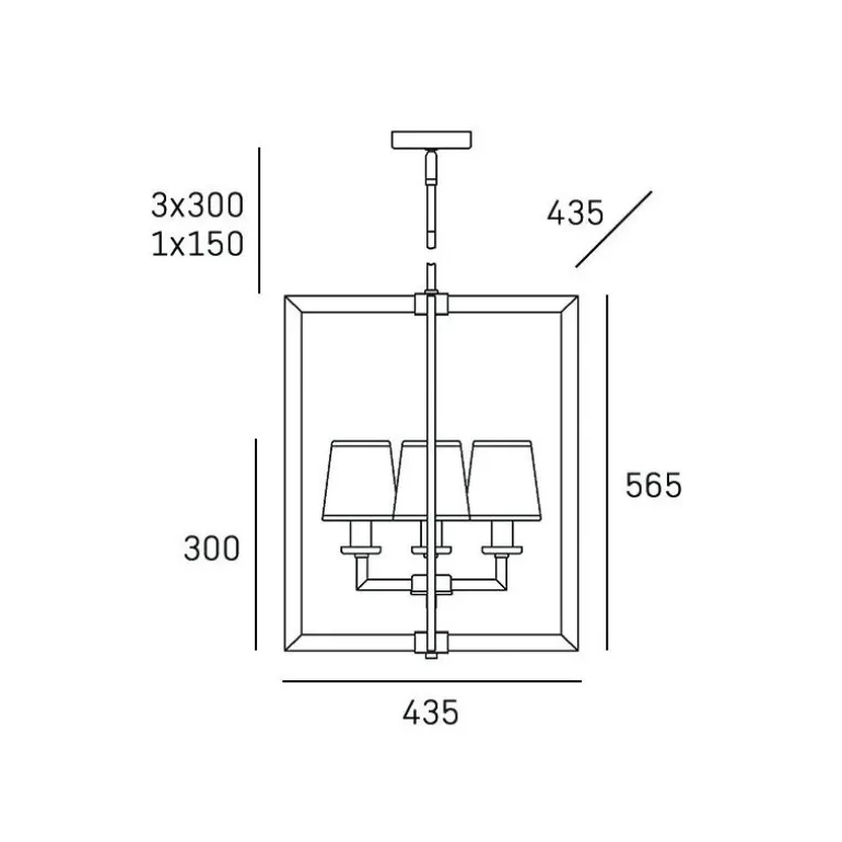 Lampa wisząca z kolekcji firmy Cosmo Light w kształcie latarenki. Odróżnia się od innych wzorów bardzo prostą formą i połączonymi metalowymi elementami z białymi abażurkami z tkaniny.