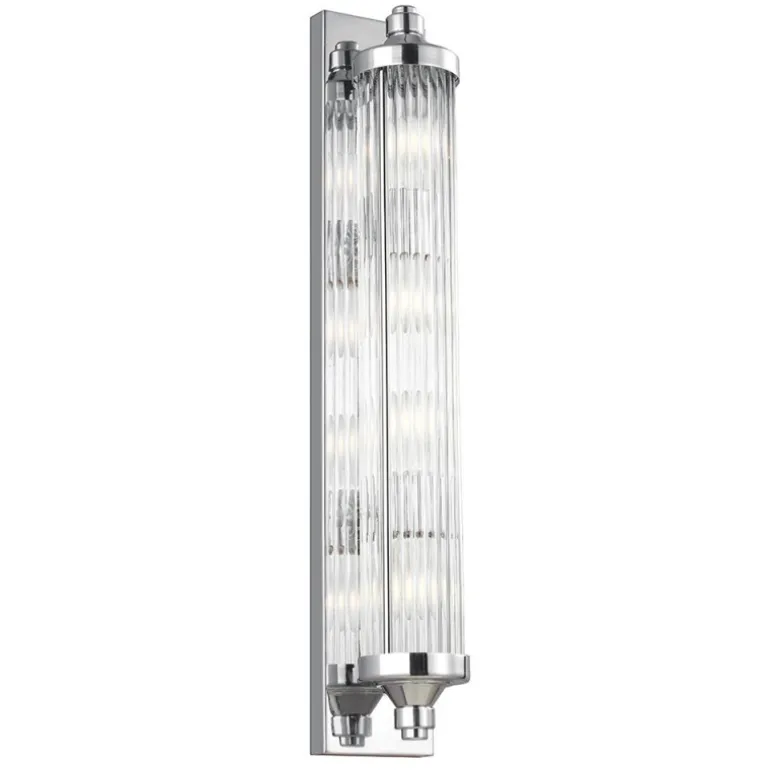 Jej chromowane wykończenie w połączeniu z transparentnymi szklanymi elementami nadaje wnętrzu blasku i przejrzystości. Lampa Elstead Paulson Wall 4L IP44 ma wymiary 74 cm wysokości, 12 cm szerokości i 14 cm głębokości, co sprawia, że jest zarówno dekoracyjna, jak i funkcjonalna. Wyposażona w cztery źródła światła typu G9 o mocy 4 x 3,5W, doskonale oświetli nawet większe przestrzenie, a klasa szczelności IP44 pozwoli na jej montaż również w bardziej wilgotnych pomieszczeniach.