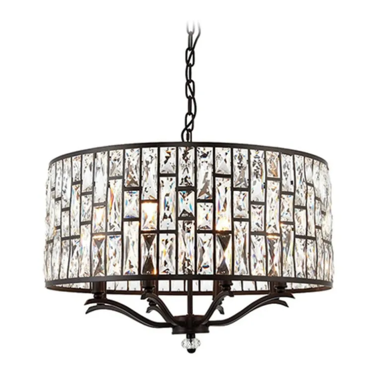 Żyrandol znanej marki Endon Belle, to lampa z wyraźnym kryształowym detalem i wykończeniem z ciemnego brązu. Lampa z możliwością regulowania wysokości. Przystosowana do ściemniania i świetnie współpracuje z żarówkami typu LED.