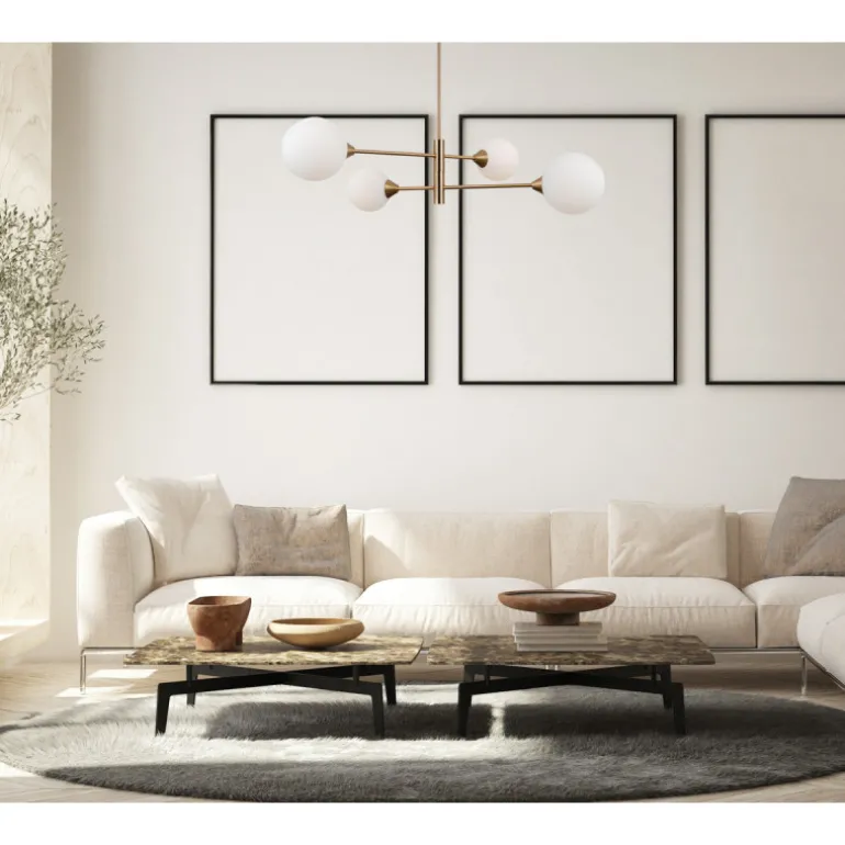Italux Evora Wisząca Mosiężna 4 to lampa wisząca, która nada Twojemu wnętrzu unikatowego charakteru, łącząc nowoczesny design z eleganckim wykończeniem. Jej mosiężny kolor wprowadza do pomieszczenia ciepło oraz luksusowy akcent, który przyciągnie wzrok każdego gościa.