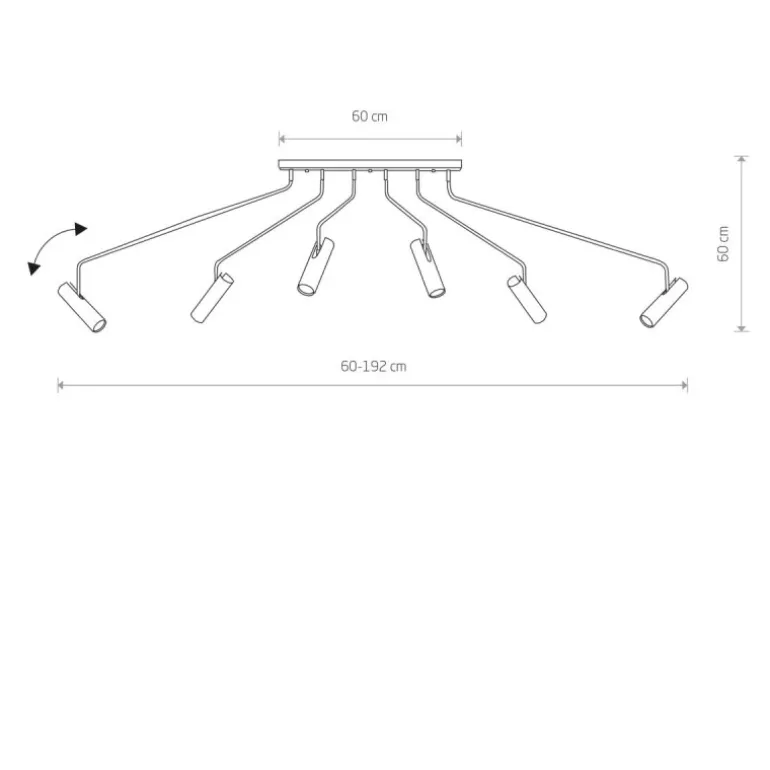 Lampa charakteryzuje się stylowym czarnym kolorem, który dodaje elegancji i jest neutralny, idealnie współgrając z różnymi stylami wnętrzarskimi. Wymiary lampy to szerokość 90-95 cm oraz wysokość 60 cm, natomiast długość można regulować od 60 do 192 cm, co czyni ją wyjątkowo wszechstronną i dopasowującą się do różnych potrzeb przestrzennych.