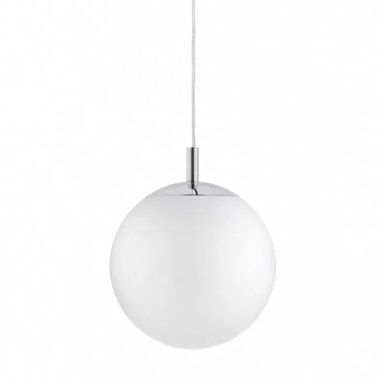Kaspa Alur S White – lampa z mlecznym, białym, szklanym kloszem kształcie kuli.