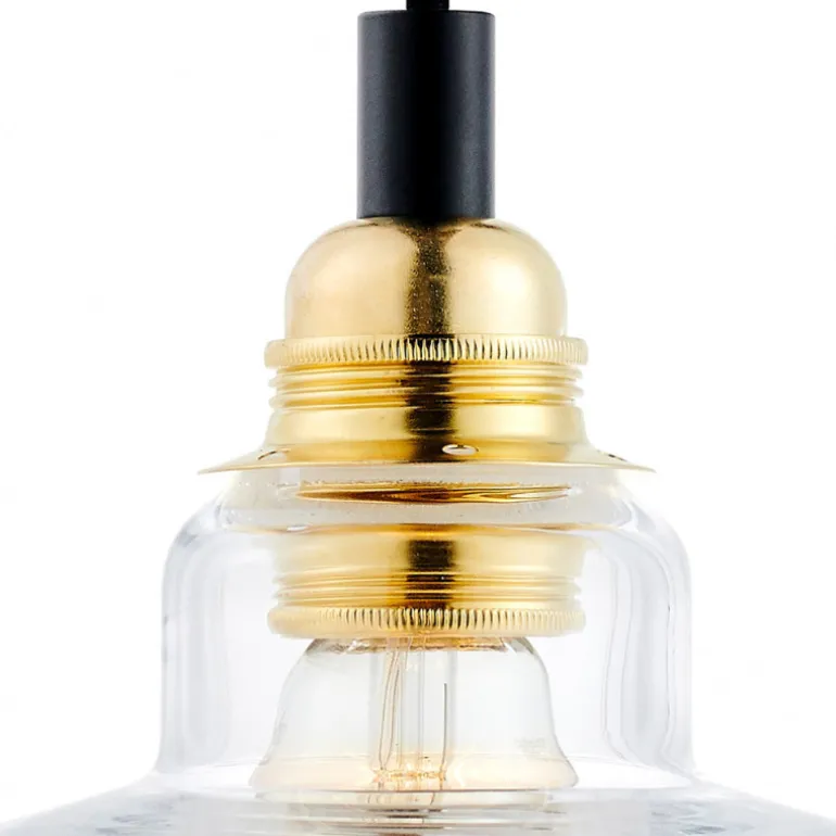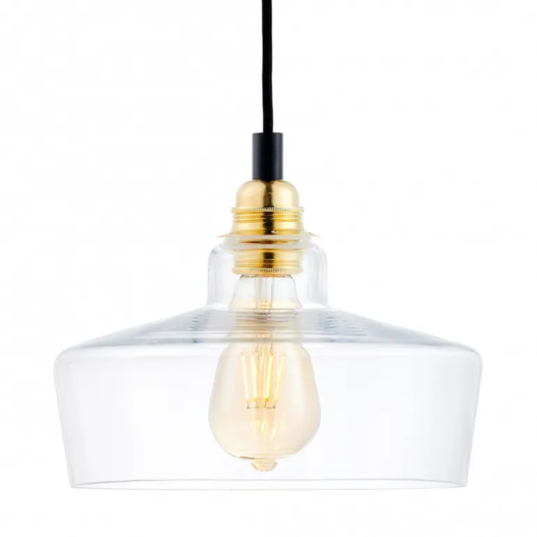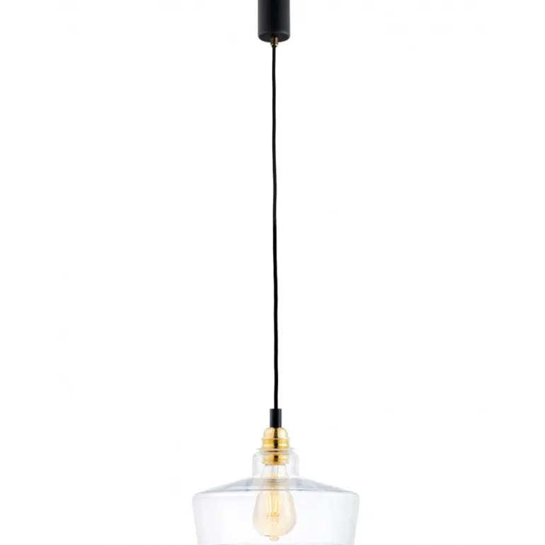 Lampa wisząca, industrialna Kaspa Longis III. Klosz lampy wykonany z przezroczystego szkła, oprawa metalowa w kolorze złota. W ofercie możliwość wyboru koloru kabla zasilającego. Polecamy użycie tej lampy w grupie z innymi produktami Kaspa Longis, tworząc tym samym indywidualną kompozycję.