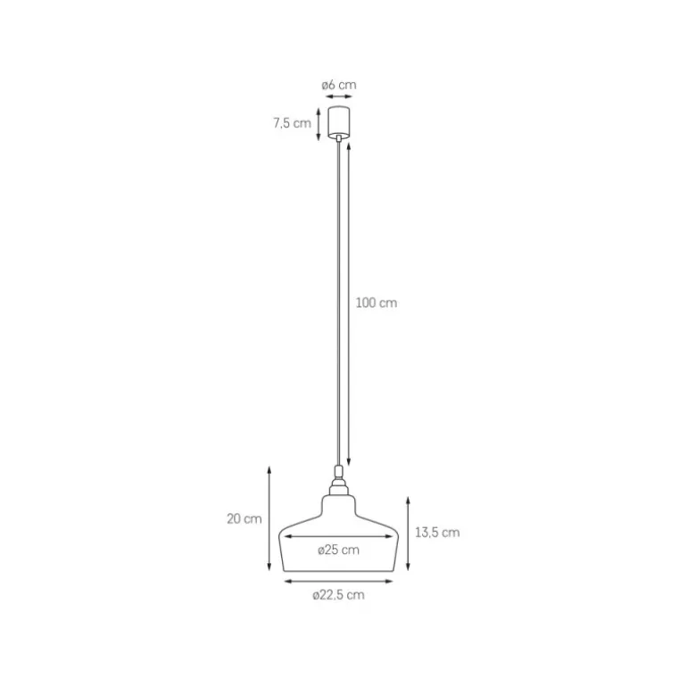 Lampa posiada jedno źródło światła typu E27, co pozwala na łatwy dobór żarówki według własnych preferencji. Zasilanie o napięciu 230 V zapewnia efektywne i stabilne oświetlenie każdego pomieszczenia. Długość lampy wynosi 125 cm, a średnica to 22,5 cm – jej proporcje są doskonałe do zawieszenia nad stołem w jadalni, blatem kuchennym czy w salonie.