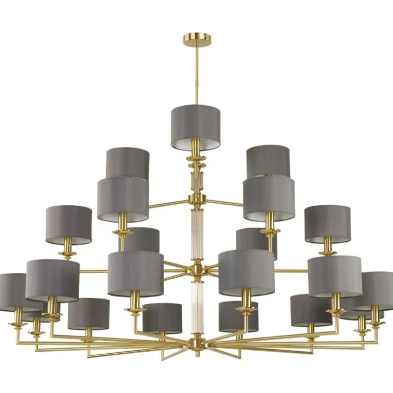Lampa z kategorii żyrandoli klasycznych, z abażurami i nowoczesnymi, wyróżnia się imponującą ilością 21 źródeł światła, które są dostosowane do żarówek typu E14. Wyjątkowy charakter lampy podkreślają dostępne warianty kolorystyczne: złoty matowy, patyna, nikiel oraz klasyczny złoty, co pozwala na idealne dopasowanie jej do każdego wnętrza.