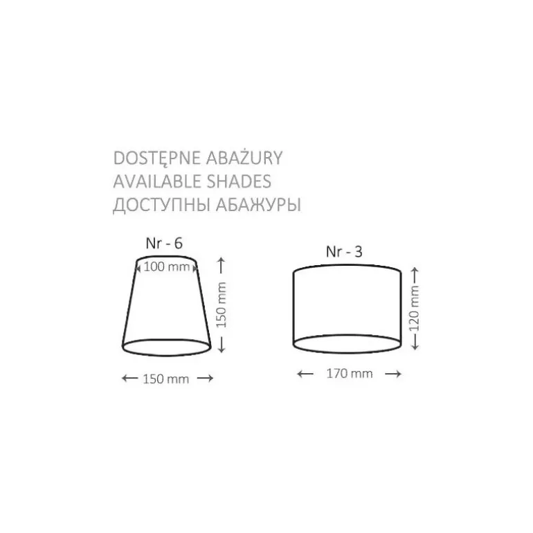 - Różne kolory oraz kształty abażurów do wyboru