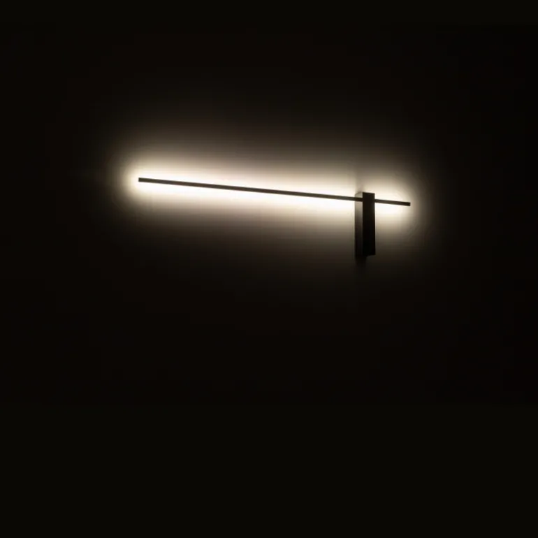Lampa jest utrzymana w klasycznym czarnym kolorze, co sprawia, że łatwo wpasuje się w różnorodne aranżacje wnętrz. Jej wysokość wynosi 18 cm, a długość 80 cm, co czyni ją wyrazistym, ale nie przytłaczającym elementem dekoracyjnym ściany.